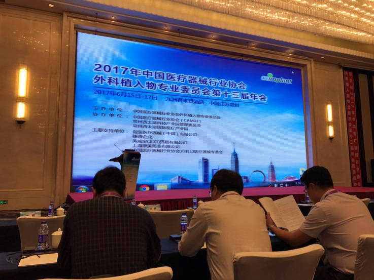/ 2017-12-152017年中国医疗器械行业协会外科植入物专业委员会第十三届年会于2017年6月15日至17日在江苏省常州市召开,我公司常务副总孙建文;副总经理文春玲、杨磊以及研发主管尚亚光一行参加。本次会议聚焦目前行业内学术交流、法规注册、临床监管、招标制度、创新科技、投资动向等热点,帮助企业了解行业动态,推动业内交流讨论,邀请国家相关主管部门负责人就政策法规、审评检测及企业重点关注的热点问题进行解析交流;邀请行业专家就产业发展动向、器械临床实践等方面进行分析和交流;邀请骨科介入等企业负责人就企业生产经营相关问题进行深入讨论;邀请医院临床专家对关节、脊柱等骨科产品的发展及设计进行建议。